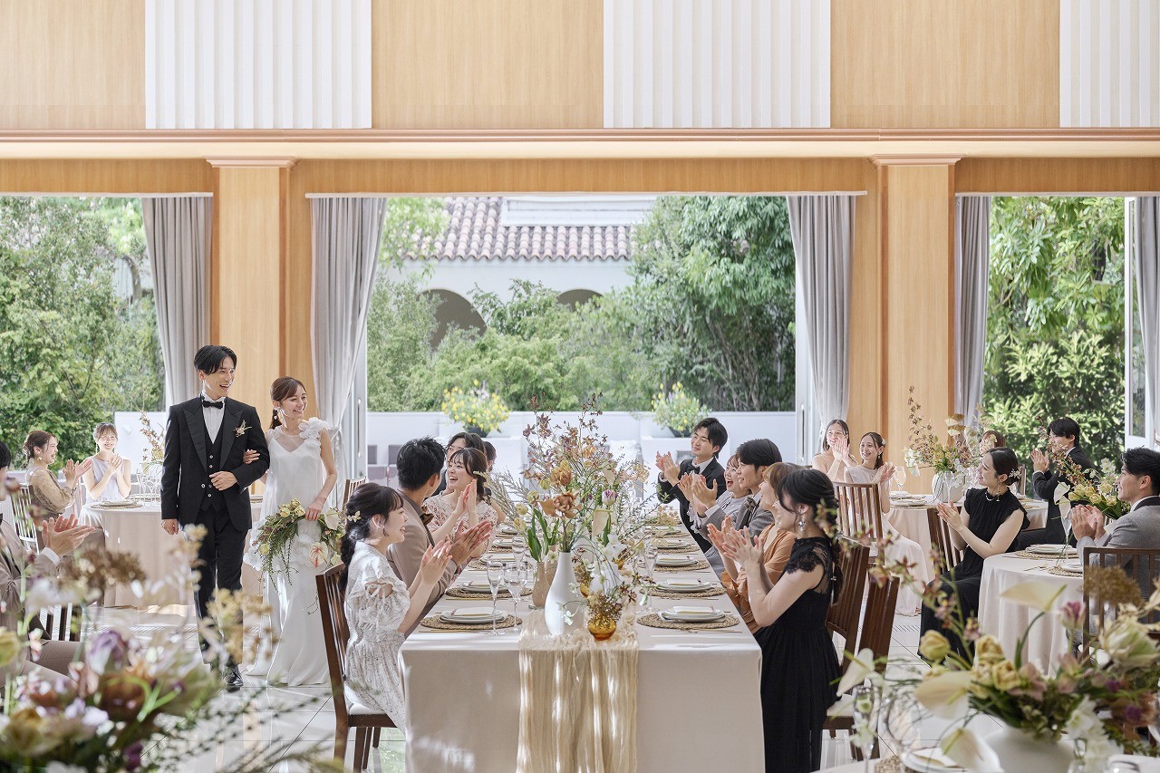 2025年9月にララシャンスベルアミーの 「フィレンツェ」が 自然光あふれる空間へと生まれ変わります。 大きな窓からやさしく差し込む陽光がおふたりと ゲストを華やかに照らし、大切な一日が より一層耀きに包まれます。