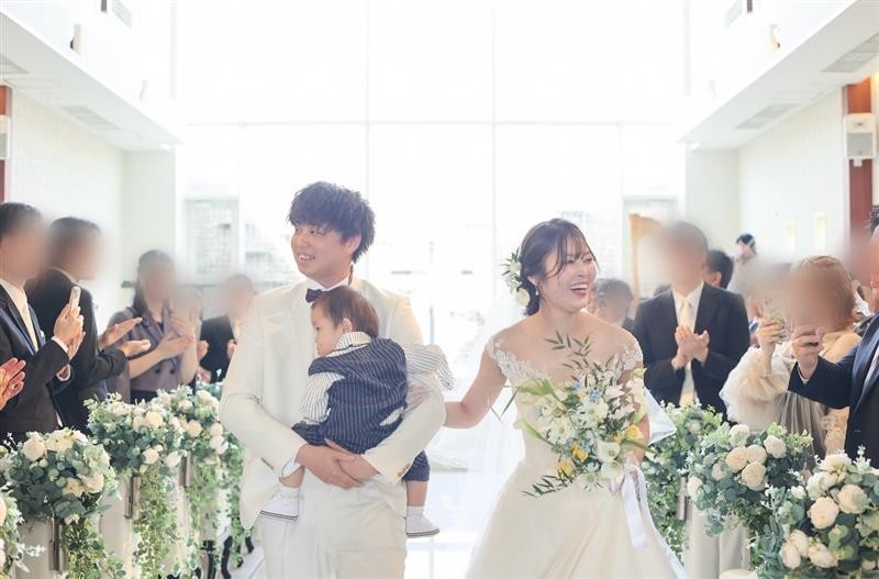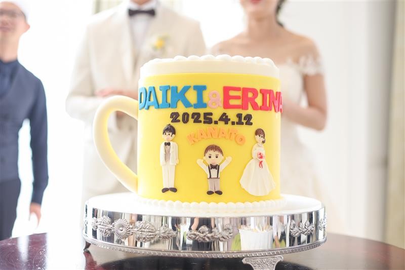 新郎新婦様と大切なお子様の似顔絵とお名前があしらわれた、可愛いオリジナルケーキが登場しました✨️