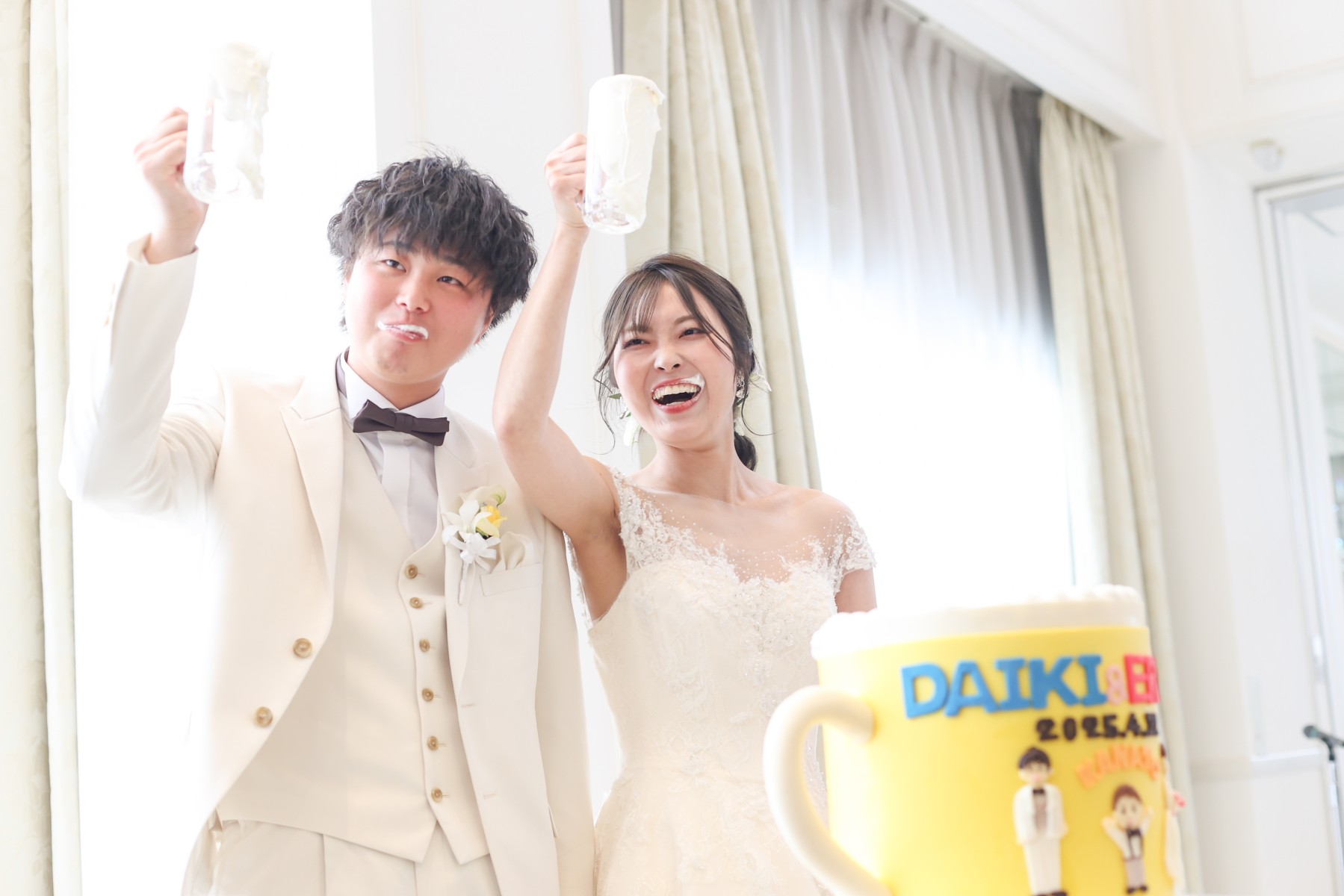 ウエディングケーキは、新婦様の大好きな"生ビール"をモチーフに🍺