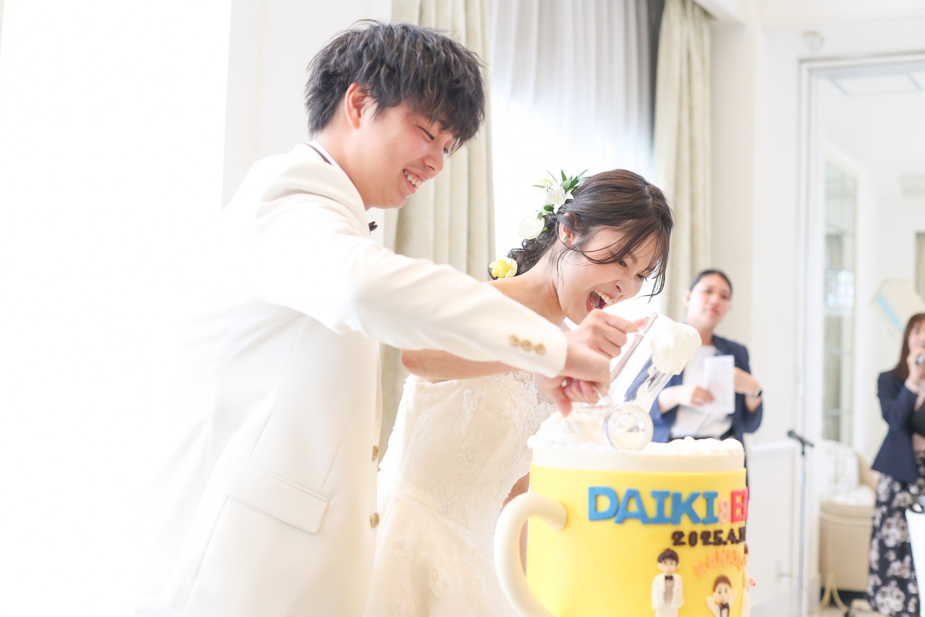 おふたりの口元にはクリームがつき、笑顔いっぱいの幸せなシーンとなりました。