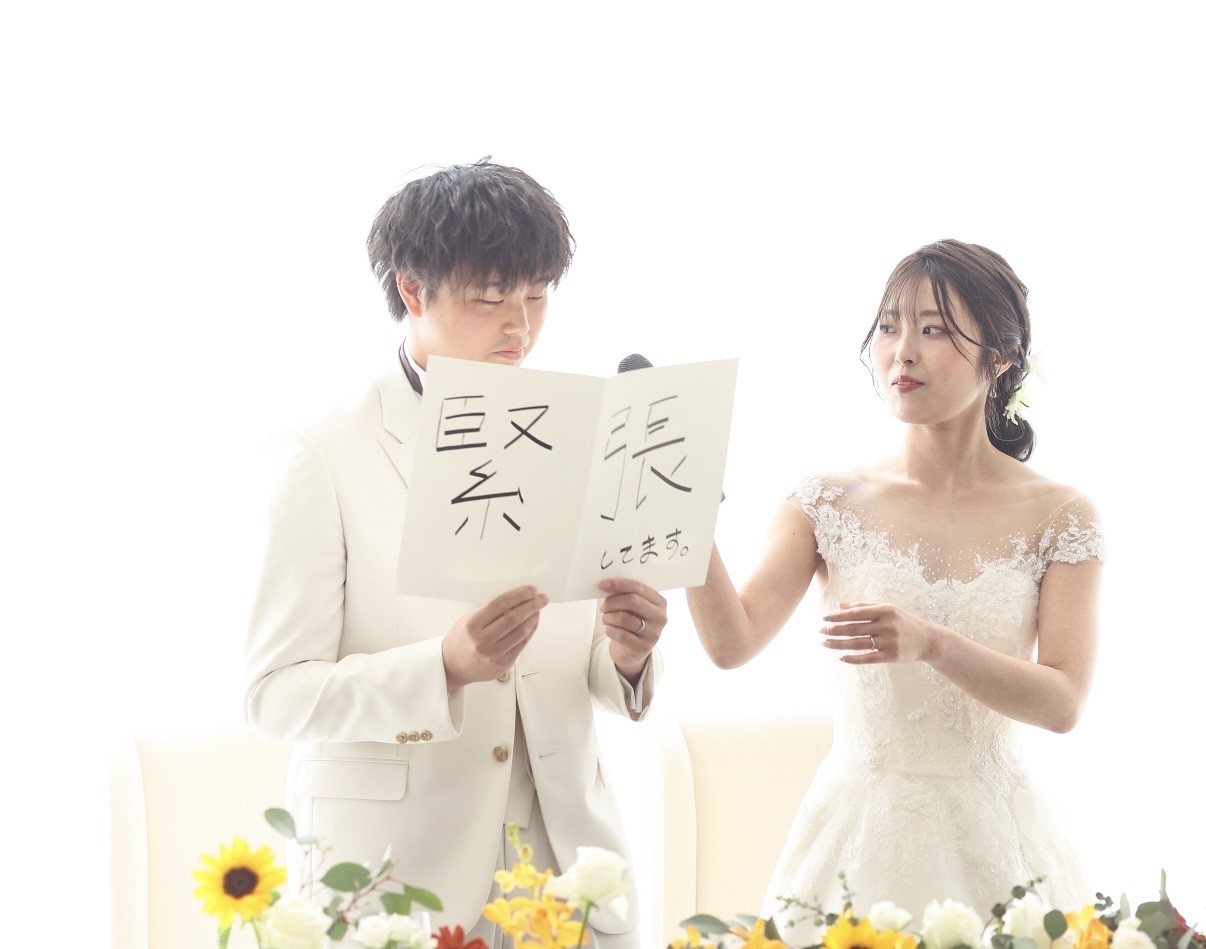 黄色は信頼、緑は感謝、水色は尊敬、赤は飲みすぎ注意⚠️など、おふたりからのメッセージとともに披露宴は幕を開けました!