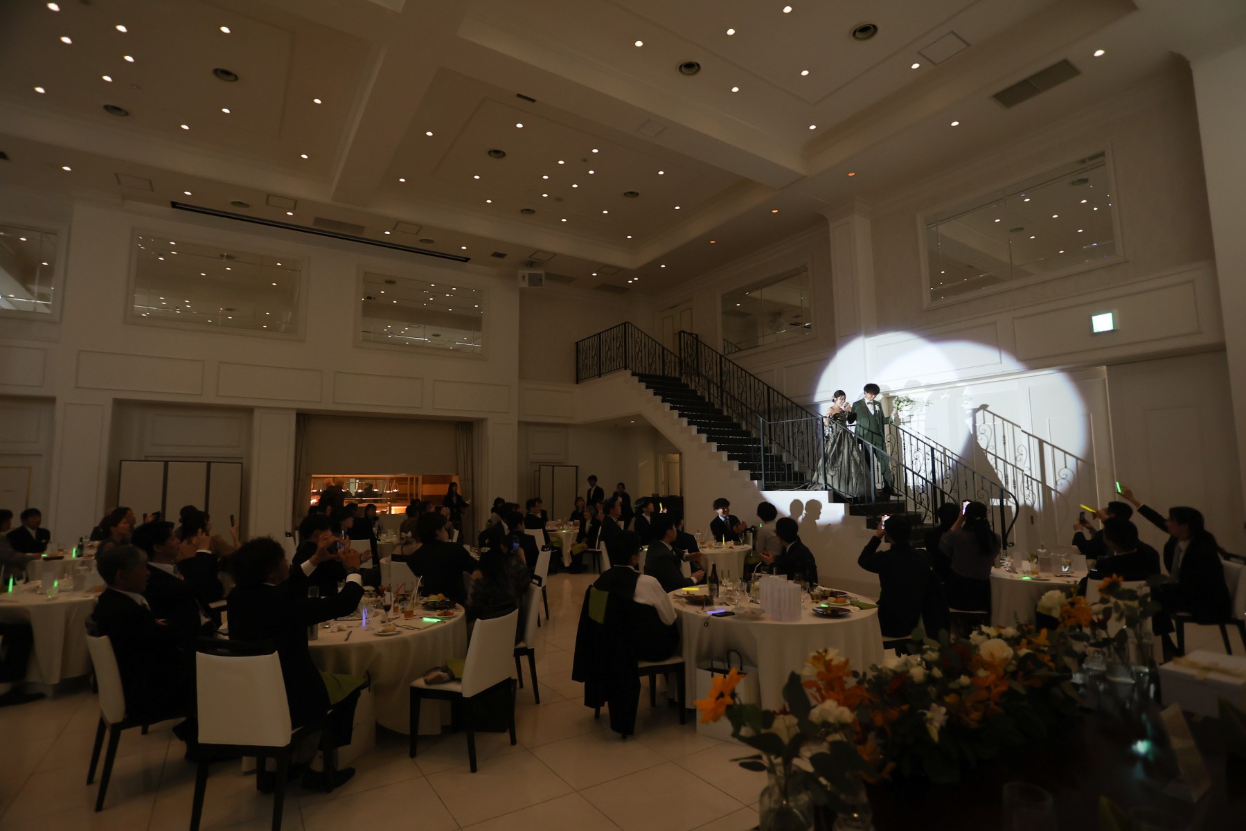 再入場ではプロフィールムービーに続けておふたりの大好きなディズニーの楽曲「ジャーニー・トゥ・ファンタジースプリングス」が流れる中、2階から華やかにご入場✨️