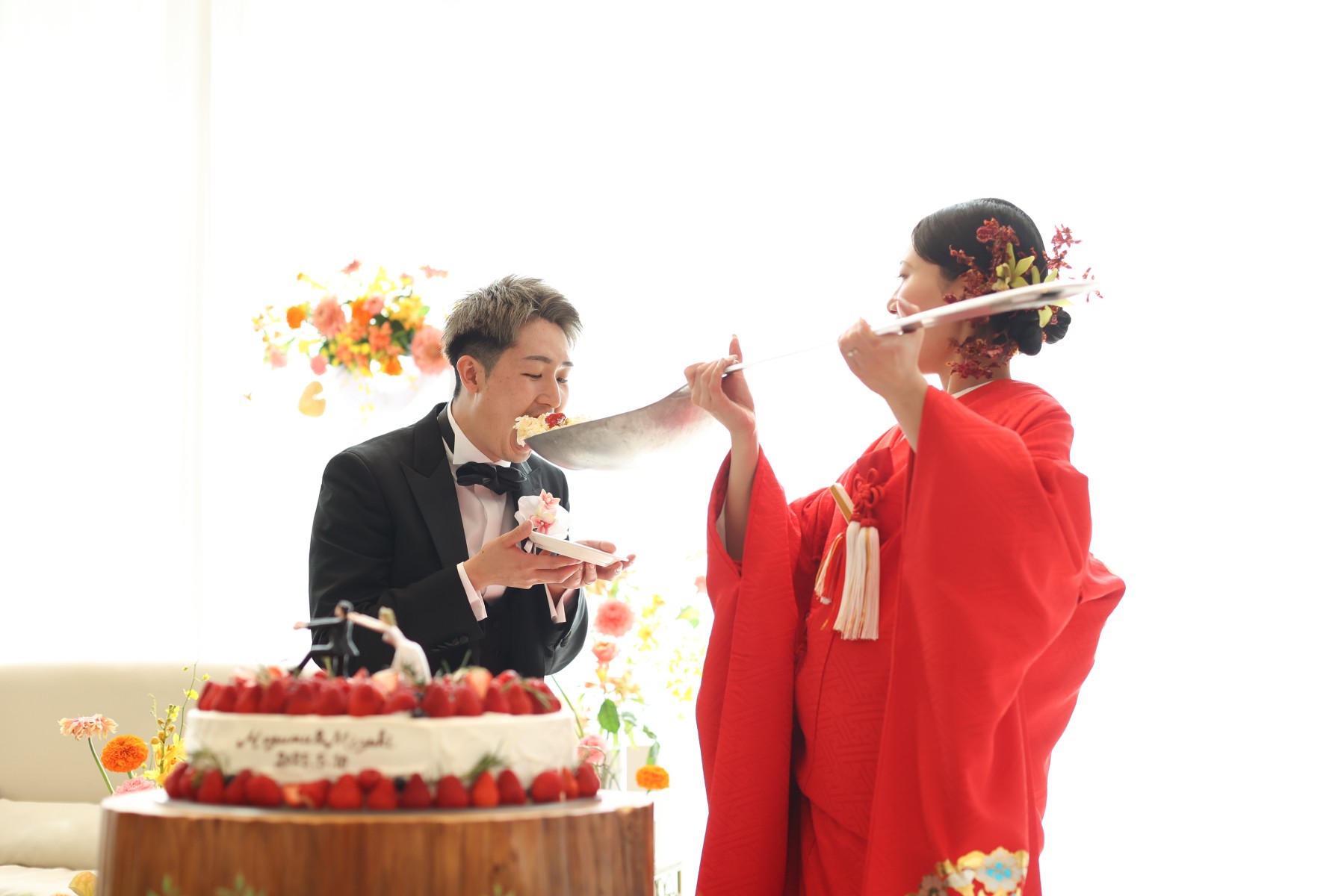 ケーキセレモニーのファーストバイトで大きなBigスプーンでウエディングケーキを食べるのは、食べる側も見てる側も幸せです♡