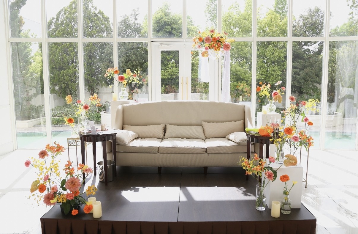 披露宴会場のお花は、イメージの写真を提出してほとんどお任せにしてしまったのですが、想像以上に可愛くてHANAMARUさんにお願いしてよかったです🌺