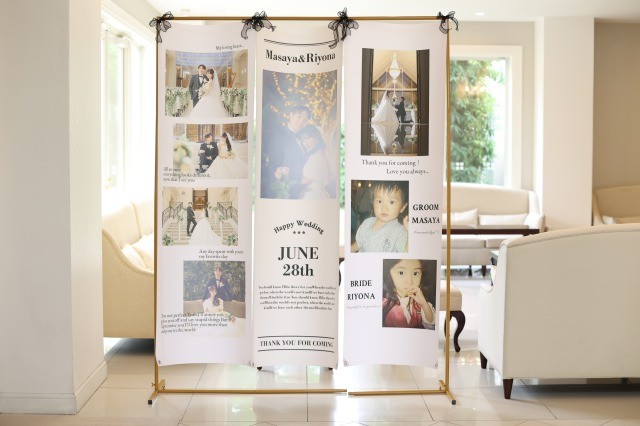 ウェルカムスペースに入ってすぐのところに私たちの写真を使用した巨大な垂れ幕を設置しました。