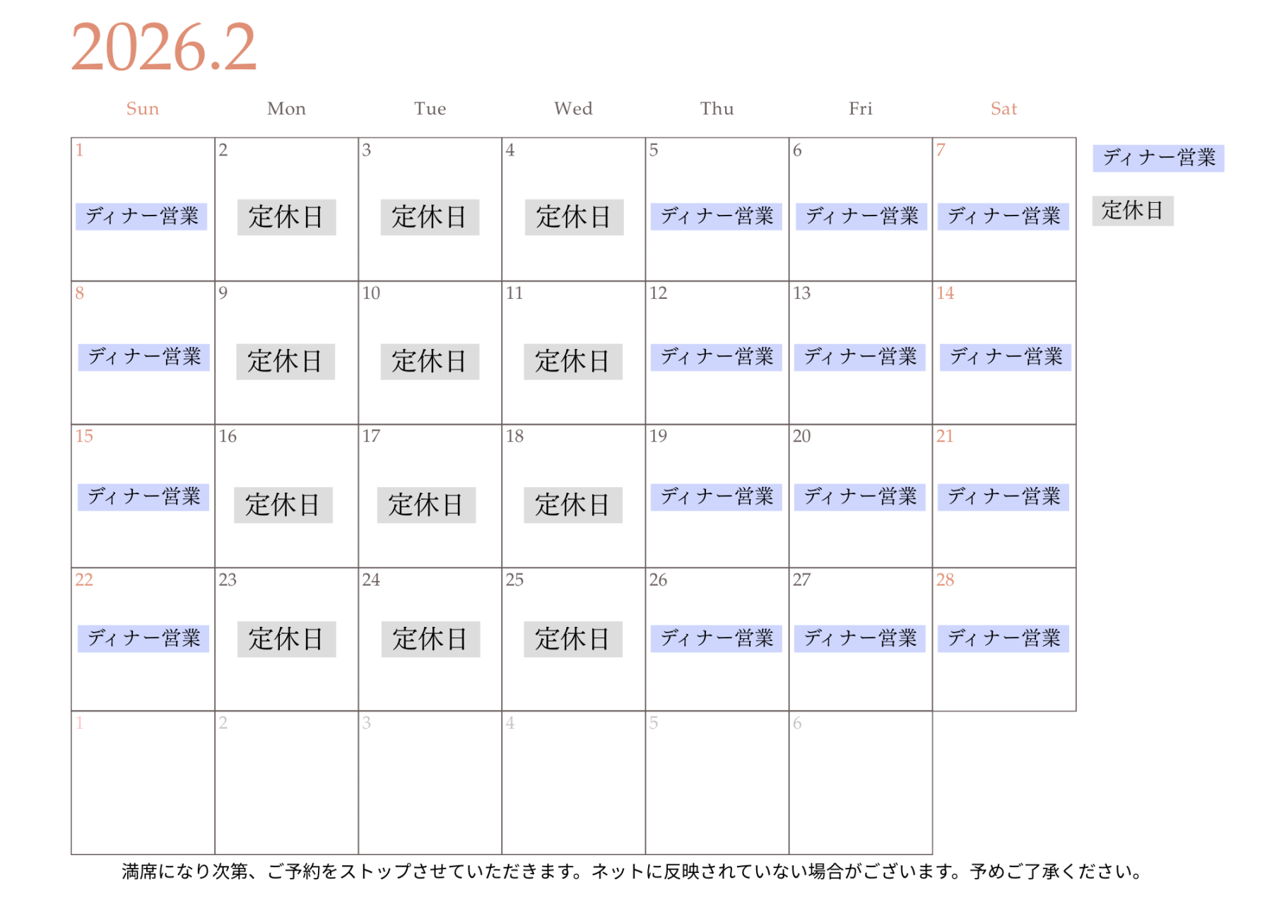 ランチ:12:00~15:30 ディナー:18:00~21:30