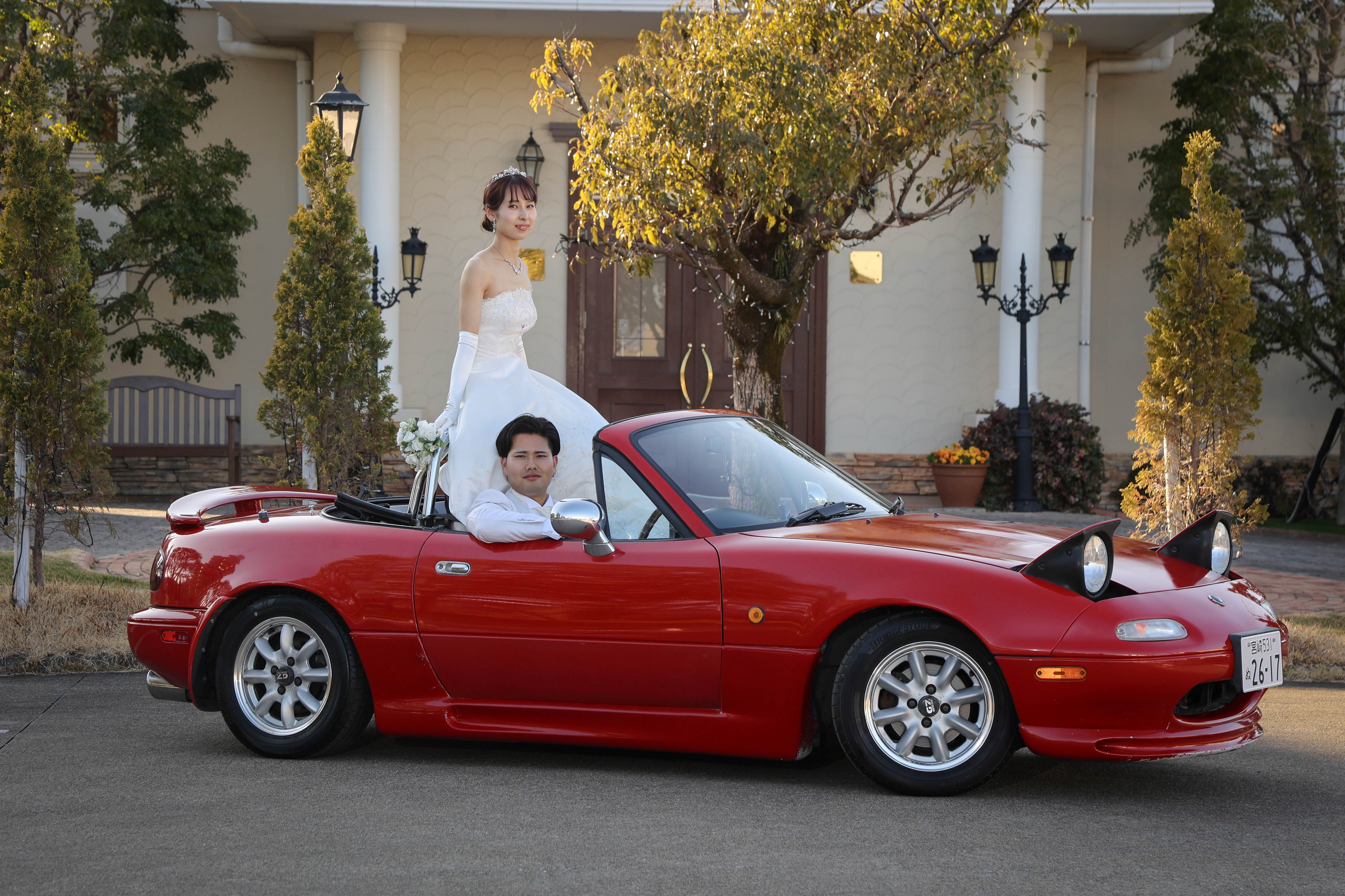 新婦が箱乗りで披露宴登場シーンは元々やってみたいと思っており
