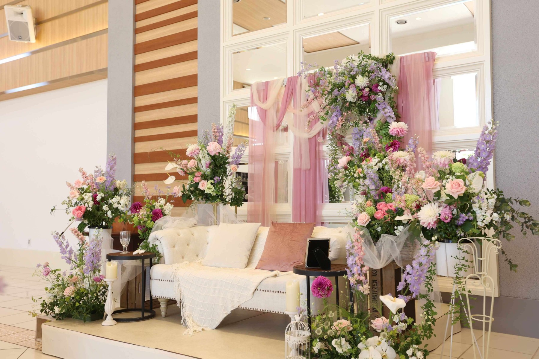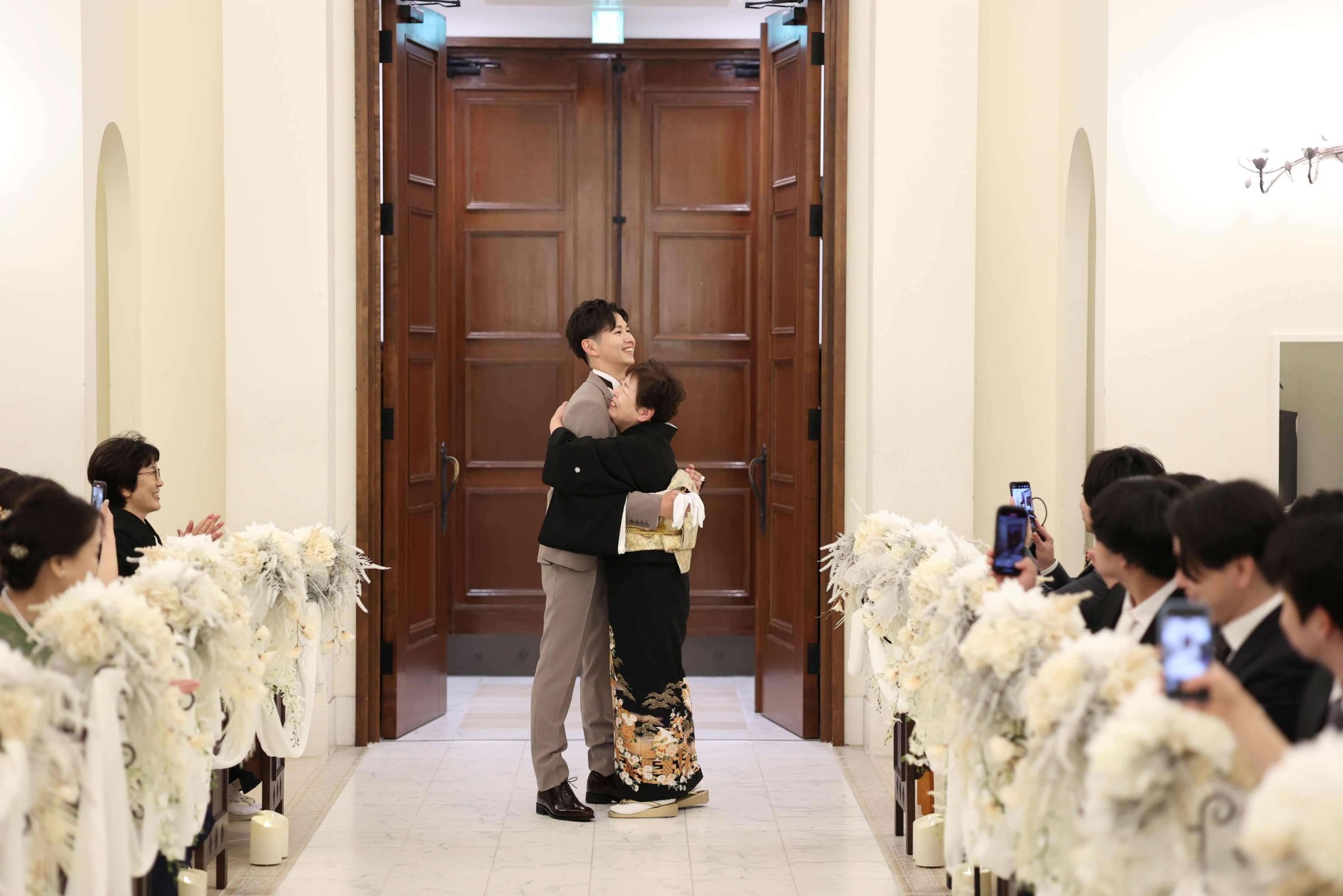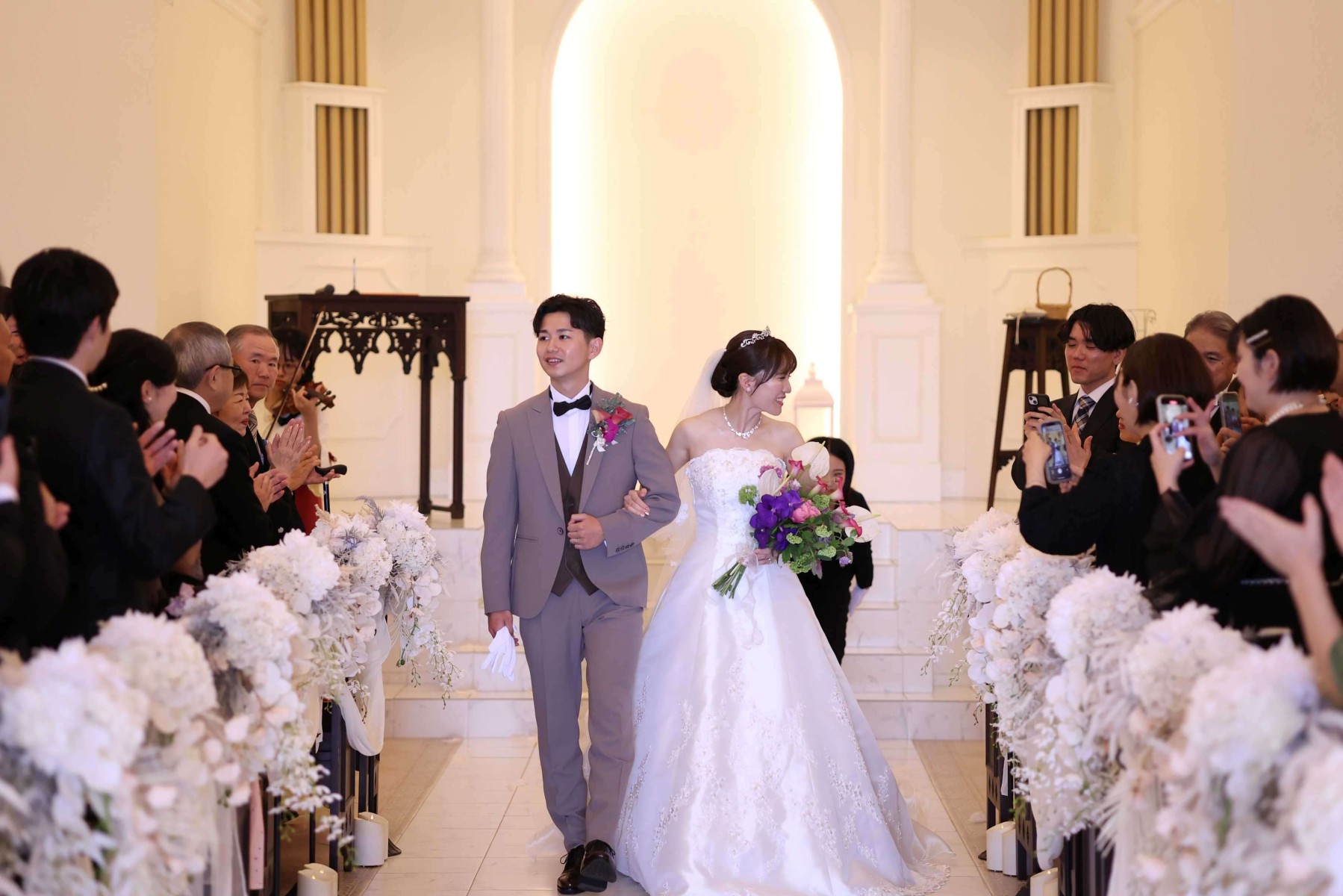 結婚式場選びで重要視したことは、本格的なチャペルがあることと、晴れたら外でフラワーシャワーがしたかったので、大階段があることでした。
