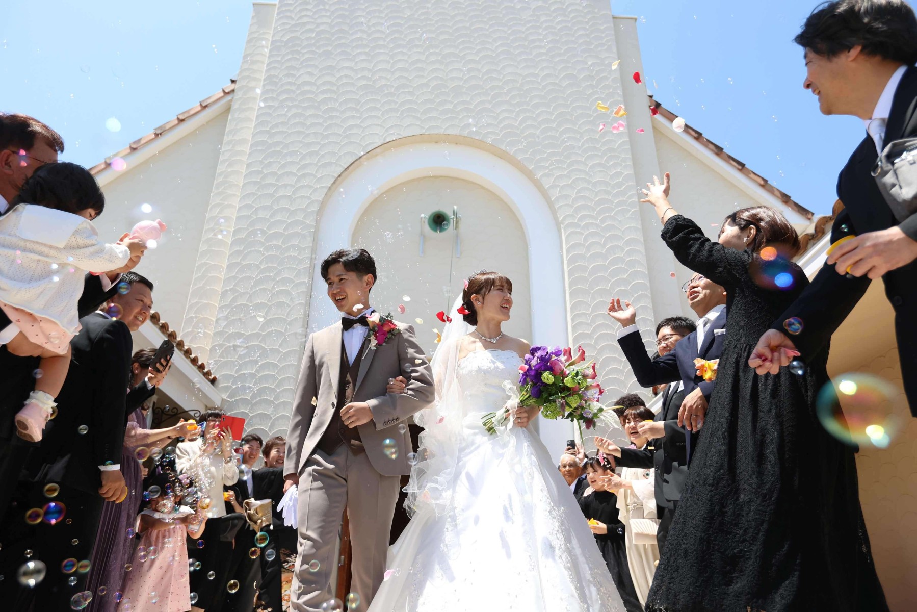 お天気にも恵まれ、雲一つない中、念願のフラワーシャワーもすることができました。