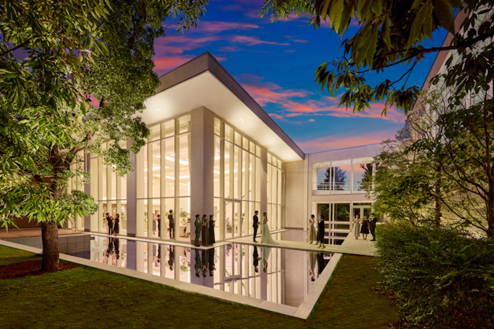 夜はライトアップされた幻想的な披露宴も体験できる。