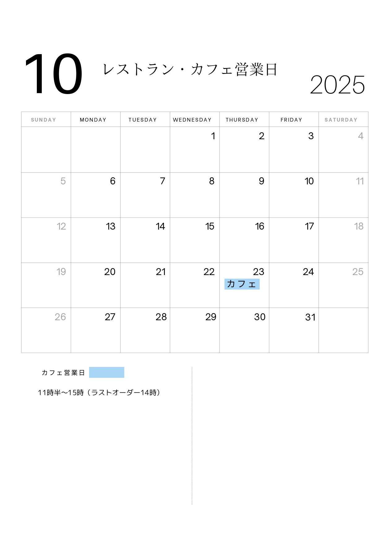 なお、カフェは23日に営業いたします。