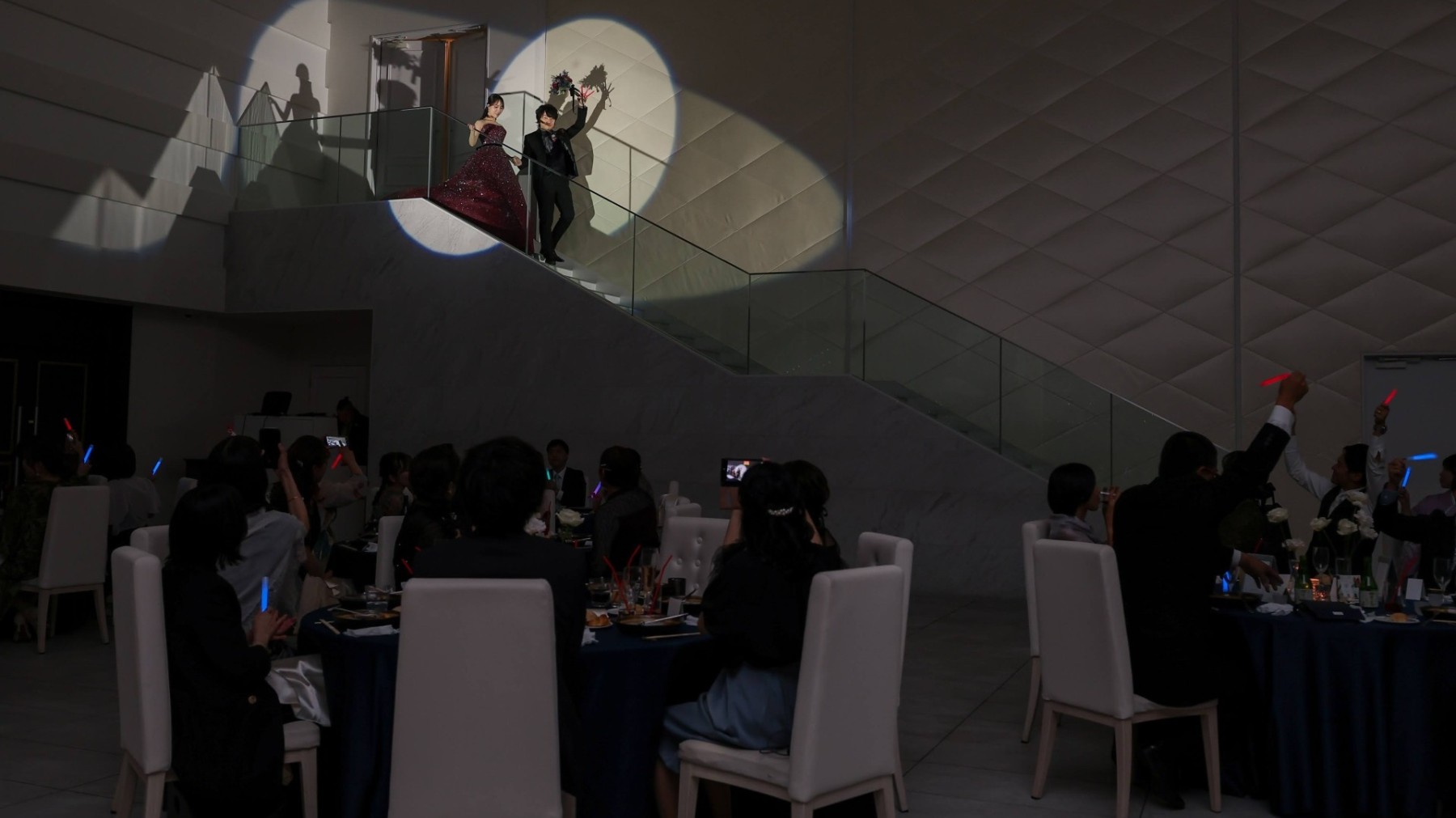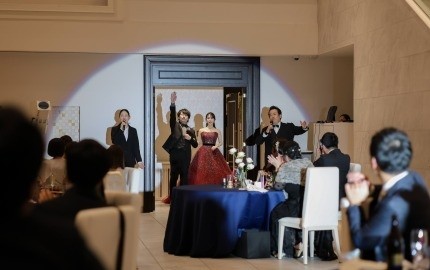 披露宴中のミュージカルのような演出、別会場でのデザートビュッフェも特別感があり、最後までゲストに楽しんでもらえる心のこもったおもてなしが叶いました。