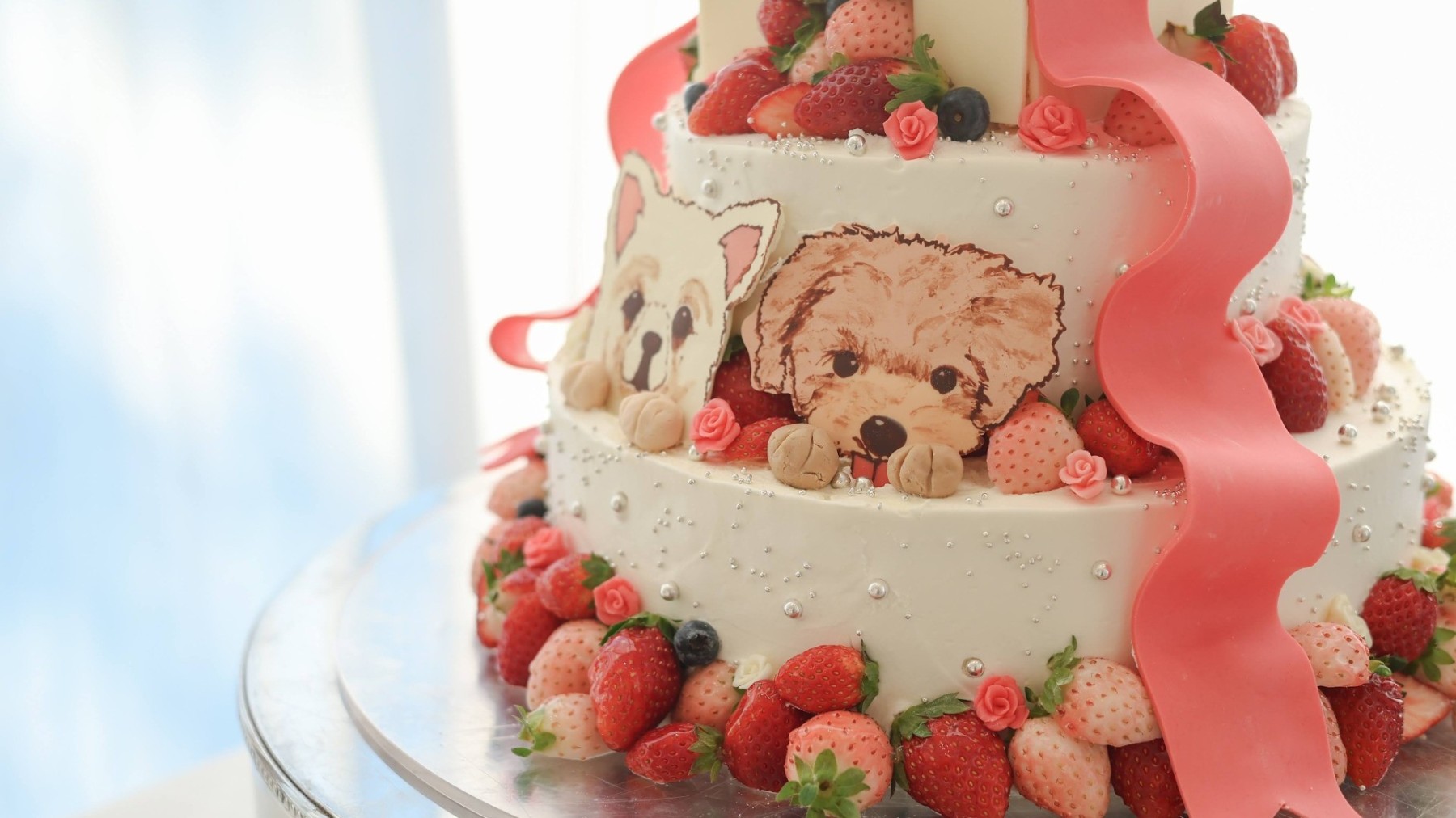 ウエディングケーキにも愛犬の顔を取り入れてとってもかわいいケーキに仕上げてもらいました♡